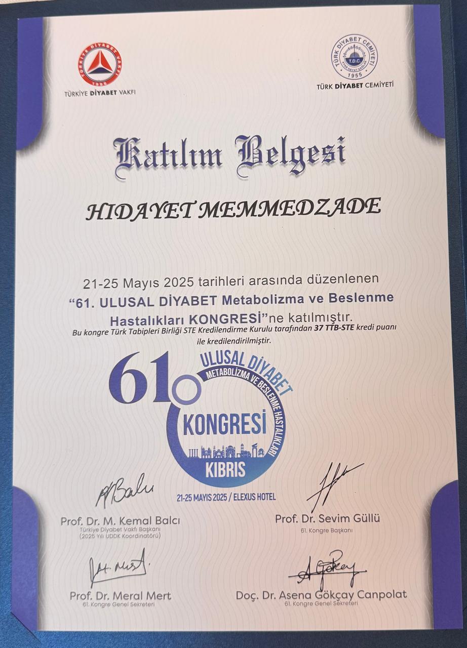 • 24.09.2025-28.09.2025 Klinik Endokrinologiya və Diabet Dərnəyinin 7-cı konfransı, Muğla, Türkiyə