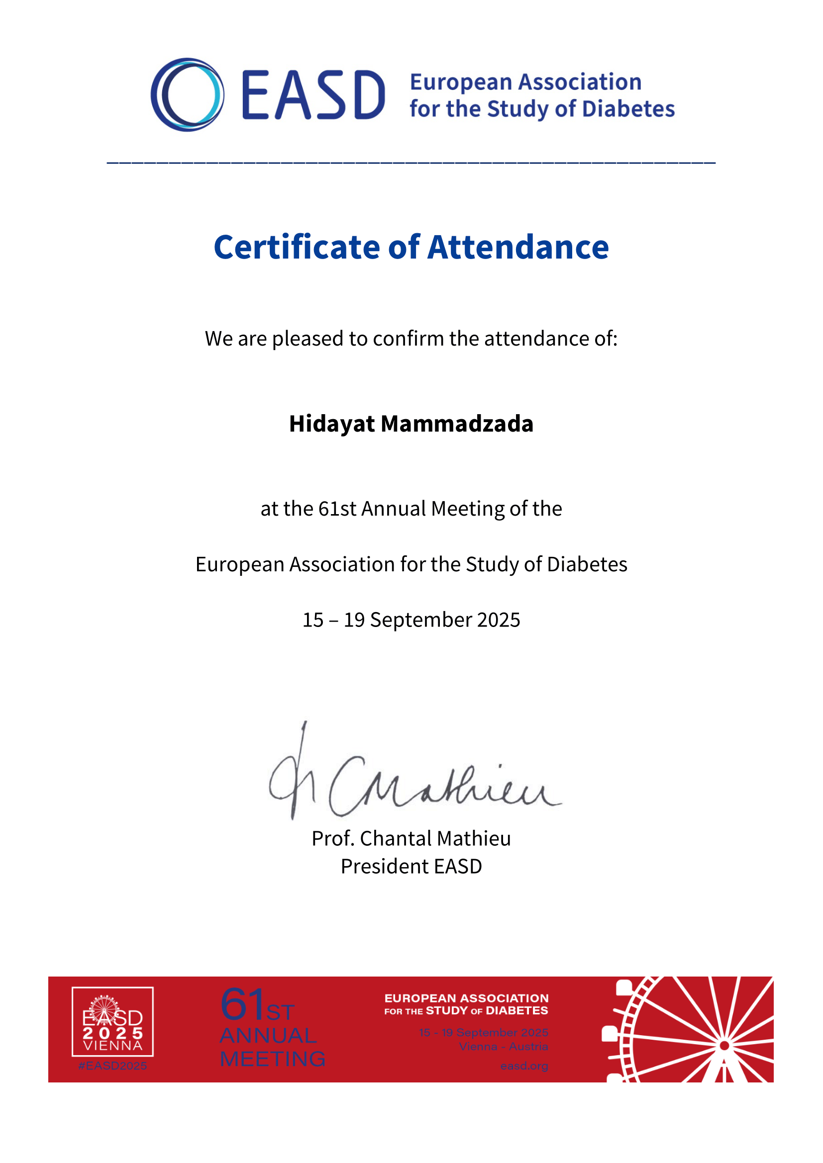 • 15.09.2025-19.09.2025 61th EASD Annual Meeting, Vienna, Austria
